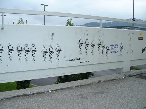 Typo stencil on the white bridge. Nice shadow typo btw.