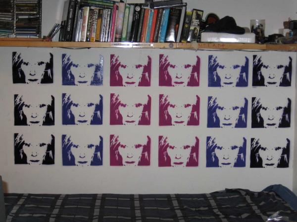 18 stencil ad un layer realizzati in tre colori. Grandezza totale circa 2,50 X 1,50. tempo di realizzazione 2 giorni. Qualche commento